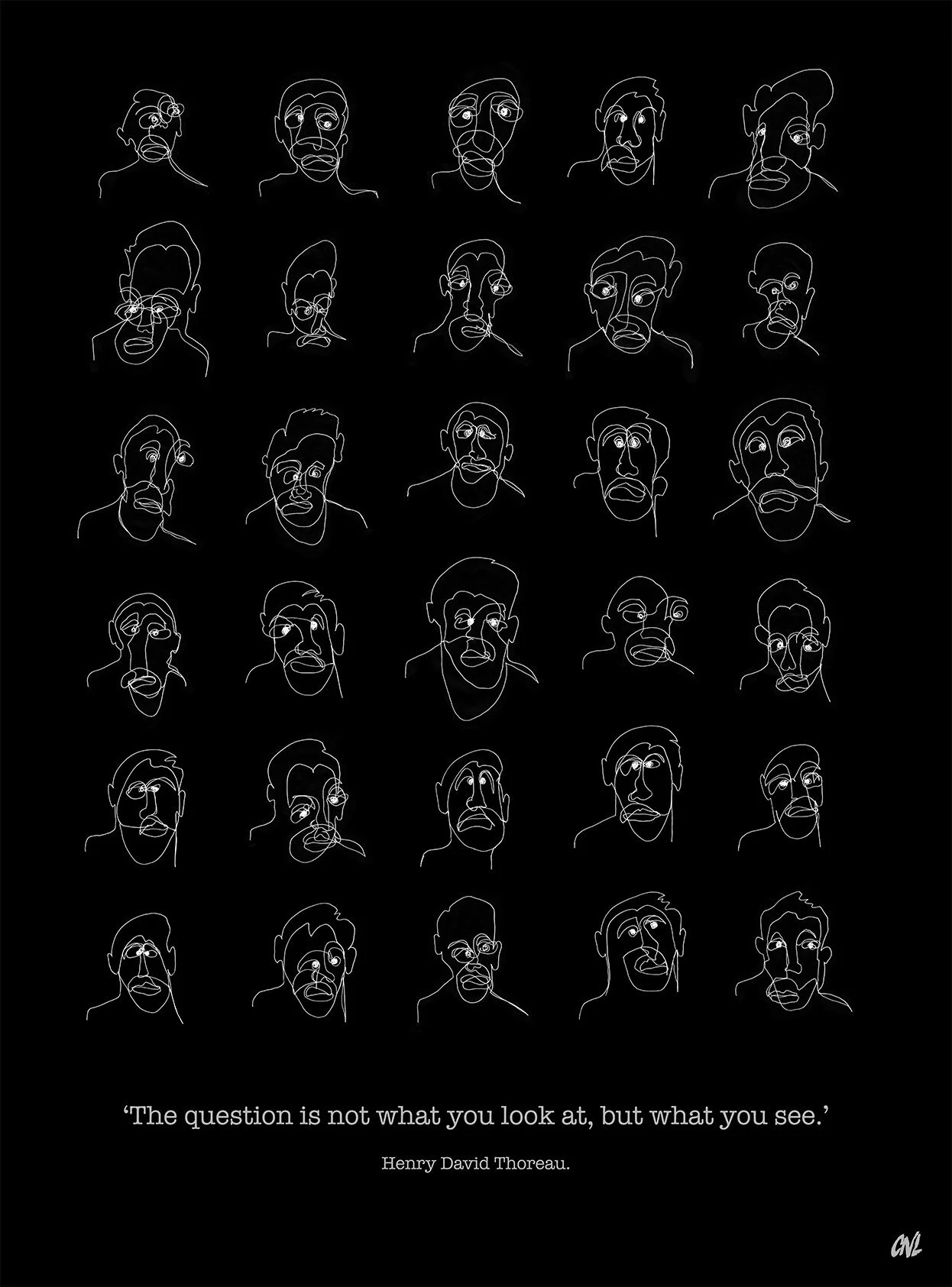 You have to remember that at this point, I’d done nothing creative in a long time and the thought of anything too complex was too daunting for my brain to process. I just needed something that would help me feel like I was being even mildly creative. The portraits became a little ritual before I’d go to sleep at night. I found a little ‘flow state’ where I would switch off and solely focus on the matter at hand. Staring at myself in the mirror and creating these single line portraits as fast as I could. I didn’t expect anyone to ever see them so there was no pressure and it didn’t matter how the portraits looked it was more important that I was doing them and doing them regularly.